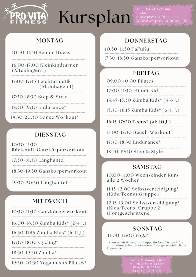 Alle Kurse können auch mit 10-er Karten besucht werden!